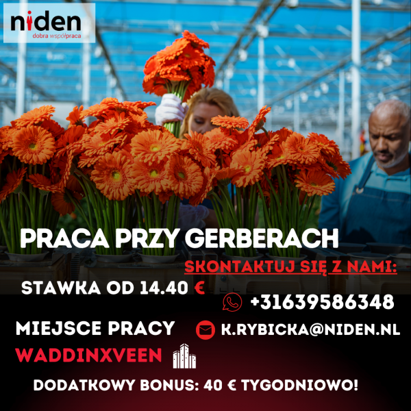 • Zbieranie gerber w szklarni zgodnie z zamówieniami