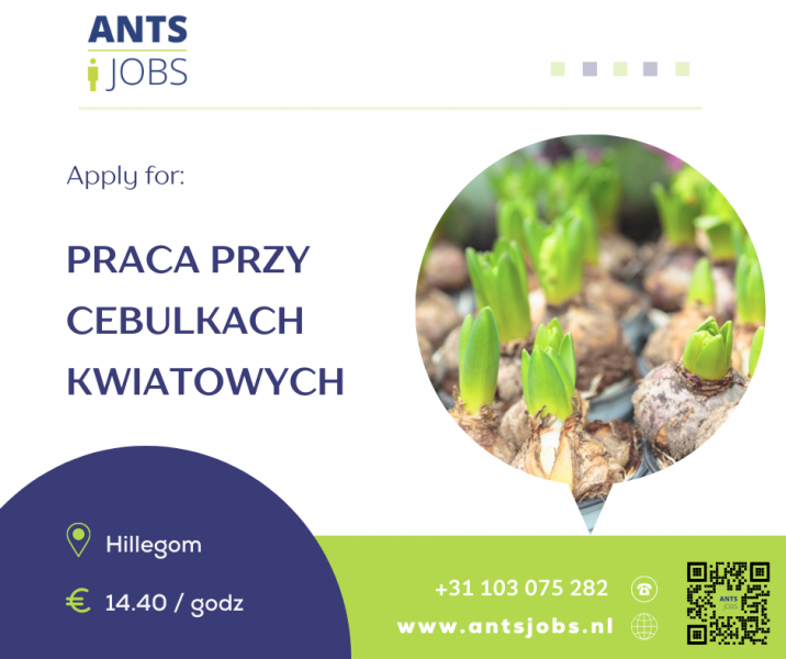 Dla naszego klienta w Hillegom specjalizującego sie w sadzeniu cebulek kwiatowych poszukujemy zmotywowanych pracowników z okolic Hillegom oraz Hagi .