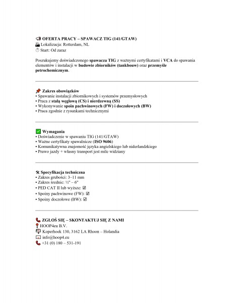✅Poszukiwany spawacz TIG z aktualnymi certyfikatami +VCA‼️‼️‼️