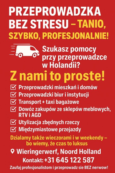 Transport oferuję - przeprowadzki, lawety, przesyłki Wieringerwerf 25 dni temu