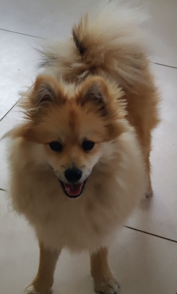 Pomeranian chłopiec o imieniu Piccolo szuka nowego ciepłego domu .