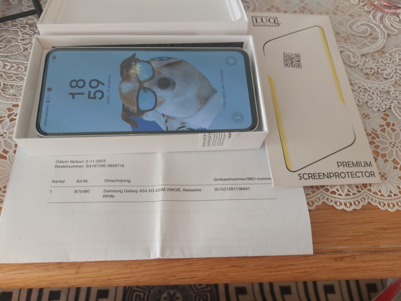 Ik verkoop een Samsung Galaxy A54 256G 5G. Er zit nog 2 maanden garantie op. De telefoon is in nieuwstaat, nauwelijks gebruikt. Hij wordt geleverd met documentatie, doos en een nieuwe behuizing van gehard glas. Geen krassen of onvolkomenheden.