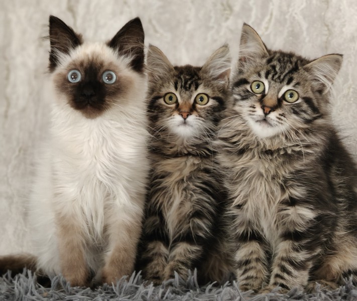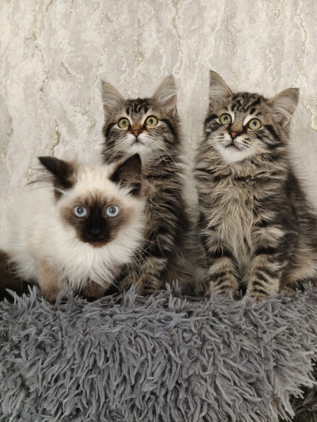 Syberyjskie kocięta rozglądaja się za nowymi ciepłymi domkami .