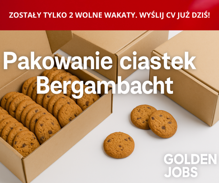 Pakowanie ciastek i układanie gotowych paczek do kartonów. Praca odbywa się w czystym i uporządkowanym środowisku. Lekka i czysta, idealna dla każdego.