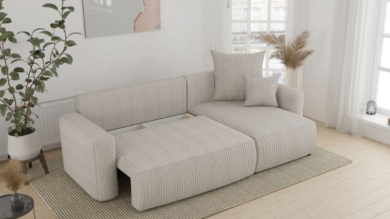 Zaprezentuj swojemu wnętrzu luksus komfortu i funkcjonalności z narożnikiem Solero. Ten nowoczesny mebel nie tylko wyróżnia się swoim stylowym, minimalistycznym designem, ale także oferuje praktyczne rozwiązania dla codziennego użytku. Narożnik Solero, obity wysokojakościową tkaniną w eleganckim, prążkowanym wzorze, jest perfekcyjnym połączeniem estetyki i praktyczności.