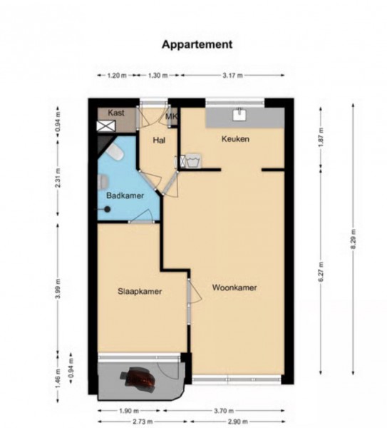 Dit appartement moet door de nieuwe huurder worden schoongemaakt en geschilderd naar wens.
