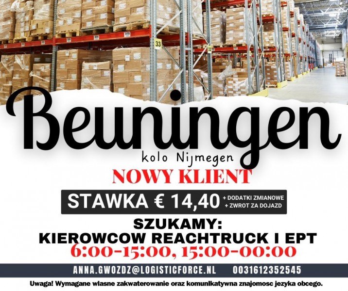 REACHTRUCK W MAGAZYNIE W WOERDEN- BEZ ZAKWATEROWANIA