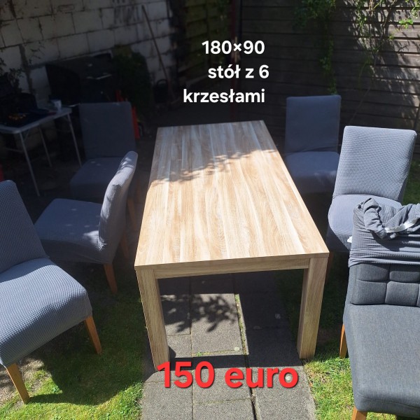 Witam. Sprzedam stół + 6 krzeseł z pokrowcami. Krzesła są w bardzo dobrym stanie. Stół można rozkręcić do transportu.
