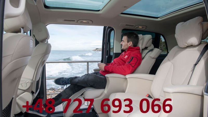 Przewozy odbywają się pojazdami marki Volkswageny Wersje R-LINE, Peugeoty Travel BIZNES VIP, Toyoty BIZNES VIP, Mercedesy V - S Class AMG BIZNES, posiadającymi Klimatyzację 3 strefową o zwiększonej wydajności chłodnego powietrza, Wygodne podgrzewane fotele z alcantary bądź ze skóry wentylowane, Każdy fotel jest regulowany osobno co zapewnia pasażerom niesamowity komfort podróżowania, Podłokietniki siedzeń w przestrzeni pasażerskiej, Tylne rzędy siedzeń wyposażone są w gniazda ISOFIX, Stoliczki, Gniazda 230 V/12 V w przestrzeni pasażerskiej, Oświetlenie do czytania w uchwytach nadokiennych, Ledy w wewnątrz i zewnątrz pojazdu ,Tv-systemy audiowizualne,DVD, Busy z automatycznymi skrzyniami biegów-o mocy od 230 koni mechanicznych, Zawieszenie komfortowe PLUS, Wszystkie szyby atermiczne i ciemne co daje intymność w podroży, Dachy panoramiczne podświetlane ledami, WiFi, Ogrzewanie postojowe i Całe najnowocześniejsze wyposażenie odnośnie bezpieczeństwa pasażerów i kierowcy oraz inne udogodnienia. Auta klasy PREMIUM.
