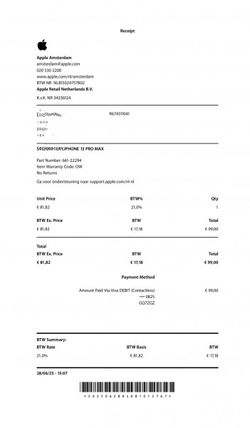 Bateria wymieniona 28 czerwca 2025 w autoryzowanym serwisie Apple – dołączam fakturę jako dowód.