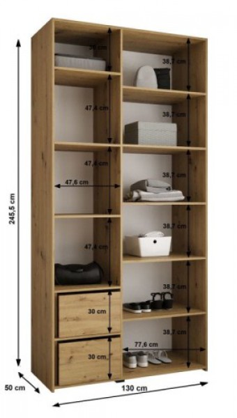 Mamy przyjemność przedstawić Państwu piękną, designerską szafę przesuwną COSMA. Cosma zwraca uwagę przede wszystkim na swoją stylistykę. Wyróżnia się wysokimi walorami estetycznymi jak również oryginalną stylistyką. Z pewnością zadowoli Cię jej funkcjonalność. Wnętrze szafy rozmieszczone zostało w taki sposób aby wszystkie potrzebne rzeczy znalazły swoje miejsce. Dodatkową zaletą są przesuwne drzwi, które z pewnością zwiększą komfort korzystania z tego wysoce funkcjonalnego mebla. Detale takie jak metalowe uchwyty w kolorze złotym lub czarnym nadają całości charakteru. Jest to zarówno praktyczny mebel, jak i ogromna dekoracja wybranego pomieszczenia.