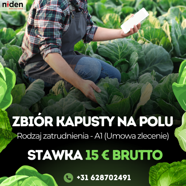 Rodzaj pracy: praca w polu – zbiór kapusty stożkowej nożem