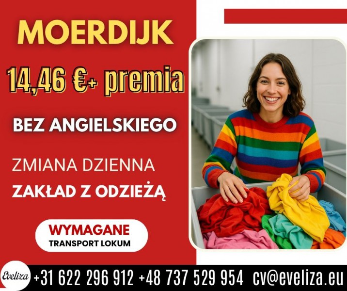 W zakładzie odzieżowym bez wymogu znajomości języka angielskiego 14,46 € + PREMIA
