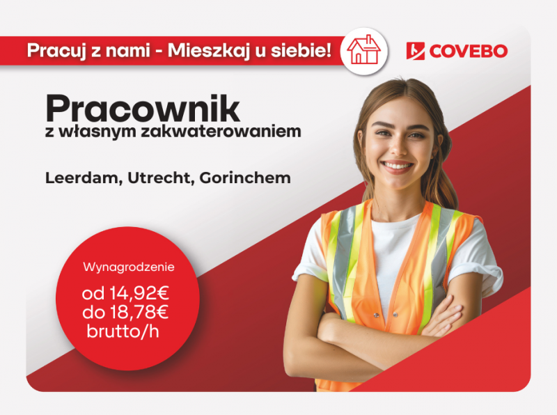 Więcej ofert z różnych regionów, znajdziesz na stronie internetowej (skopiuj link i wklej do przeglądarki) www.covebo.pl/praca-w-holandii-z-wlasnym-zakwaterowaniem