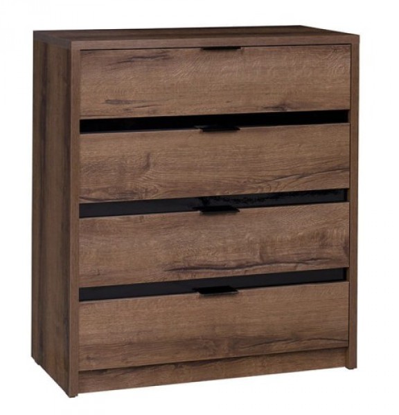 Komoda DENVER 3 jest jedną z komód dostępnych w kolekcji mebli. Stworzona z myślą o nowoczesnej sypialni, salonie lub jadalni. 4 pojemne szuflady z pełnym wysuwem pomieszczą wszystkie dokumenty lub inne wybrane przedmioty. Podział na szuflady pomoże Ci przechowywać je w zorganizowany sposób.