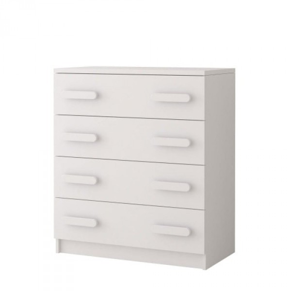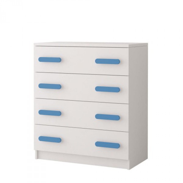 Duża komoda stworzona z myślą o zestawie mebli dziecięcych. Wyposażona w cztery pojemne szuflady. Przechowasz w nich w uporządkowany sposób wszystkie ubrania. Na szerokim blacie głównym zmieszczą się ulubione zabawki. Aby spersonalizować komodę możesz dodać do niej uchwyty w ulubionym kolorze dziecka.
