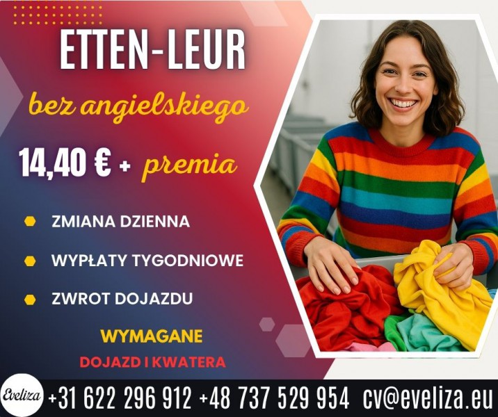 W zakładzie odzieżowym bez wymogu znajomości języka angielskiego 14,40 € + PREMIA