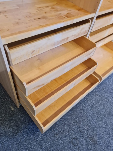 Szafa z popularnej i lubianej serii mebli ikea pax. Wymiary: 2.00m szerokości, wysokość 236cm, 60cm głęboka. Szafa ma swoje drzwi przesuwnych, z dużego kawałka czarnego szkła. Na górze oświetlenie. Korpusy i komponenty są w kolorze drewna. Szafa ma w środku dużo szuflad, półki i drążki na wieszaki. Szafa została fachowo zdemontowana, jest w bardzo dobrym stanie, jest kompletna we wszystkie elementy.