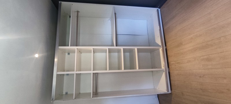 Szafa z popularnej i lubianej serii mebli ikea pax. Wymiary: 2.00m szerokości, wysokość 236cm, 60cm głęboka. Szafa ma dwoje drzwi przesuwnych z panelami z płyty meblowej w połysku. W środku ma bardzo dużo półek i drążki na wieszaki. Szafa została fachowo zdemontowana, jest w bardzo dobrym stanie, jest kompletna we wszystkie elementy.