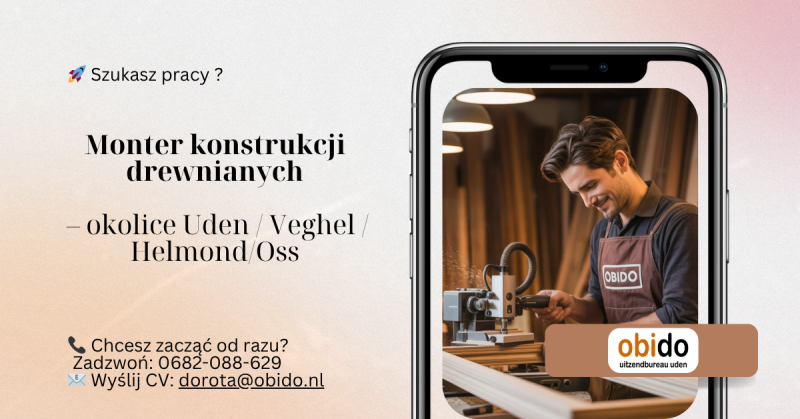️ Monter konstrukcji drewnianych – okolice Uden / Veghel / Helmond
