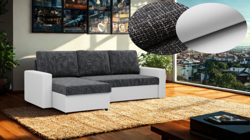 Ekoskóra to elegancka tkanina imitująca naturalną skórę, charakteryzująca się delikatną fakturą i realistycznym wyglądem. Jest wytrzymała, odporna na uszkodzenia mechaniczne i bardzo łatwa do czyszczenia – wystarczy przetrzeć wilgotną szmatką, co czyni ją idealną dla rodzin z dziećmi i właścicieli zwierząt. Ekoskóra jest również odporna na plamy i wodę, co zwiększa jej praktyczność w codziennym użytkowaniu.