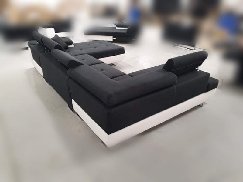 Duży narożnik do salonu w kształcie litery U. Doskonała propozycja do dużych salonów. Dzięki ogromnym wymiarom odpocznie na nim cała rodzina. Wyposażony w niezbędne funkcje nowoczesnego mebla wypoczynkowego. Solidny i stabilny mebel wykonany przy użyciu wysokiej jakości materiałów.