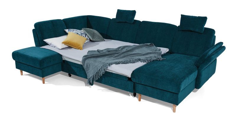 narożnik z funkcją spania i pojemnikiem na pościel,