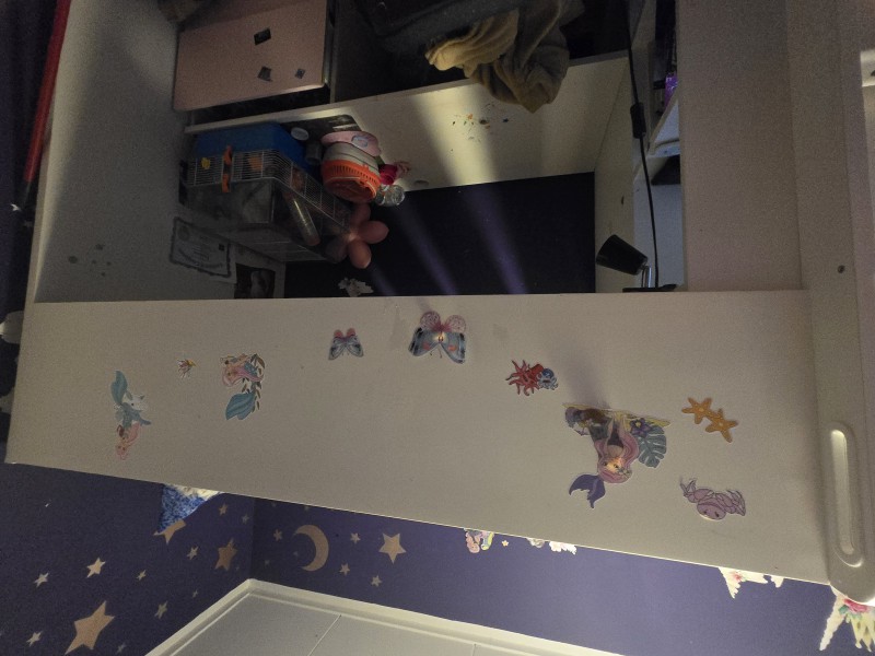 Sprzedam używane lozko pietrowe dla dziewczynki. Lozko jest jednoosobowe połączone z regałem z półkami biurkiem szafa i dwiema szufladami przy biurku .Odbior Rotterdam charlois.Pomoc przy złożeniu lozka kwestia dogadania.
