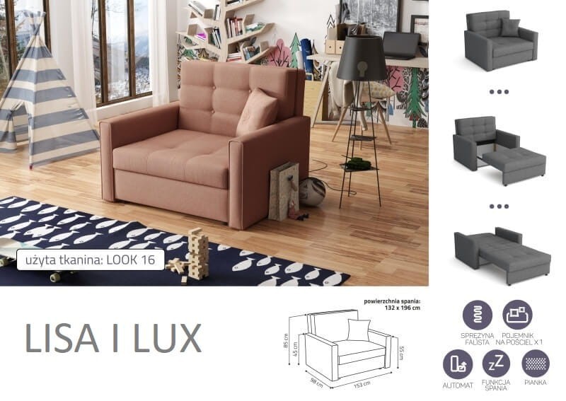 Fotel z funkcją spania LISA I LUX w promocyjnej cenie wykonany zostal w tkaninie look 16