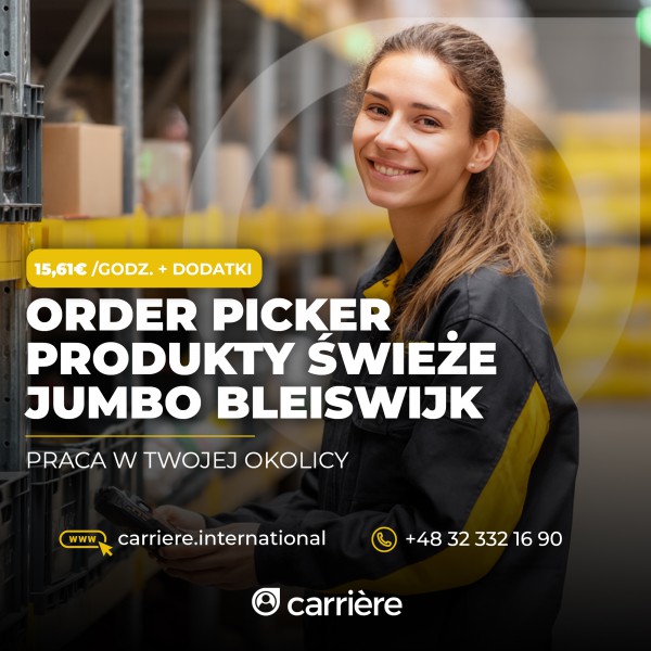 Jumbo to jedna z wiodących sieci supermarketów w Holandii. Firma obsługuje także zakupy online, po pandemii to jedna z najszybciej rozwijających się gałęzi firmy. Pracownicy działu e-commerce dbają o to, by zakupy dotarły na czas do domu klienta. Firma zatrudnia osoby z różnych krajów, w tym wielu Polaków, dbając o przyjazną atmosferę pracy i możliwość rozwoju.