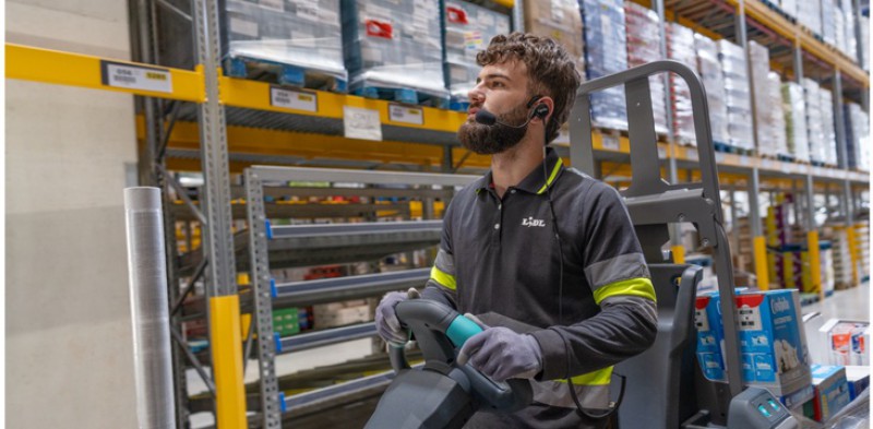 Zamowienia zbiera sie za pomoca systemu voicepick i wozka ept.