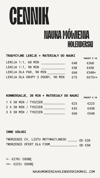 Prowadzi je doświadczona nauczycielka z ponad 20-letnim stażem w nauczaniu języków obcych i 15-letnim doświadczeniem w nauce holenderskiego.