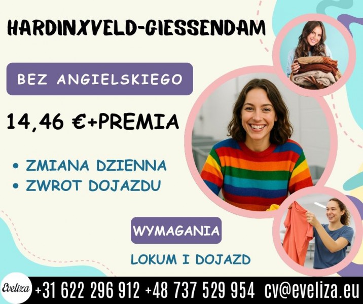 W zakładzie odzieżowym bez wymogu znajomości języka angielskiego 14,46 € + PREMIA