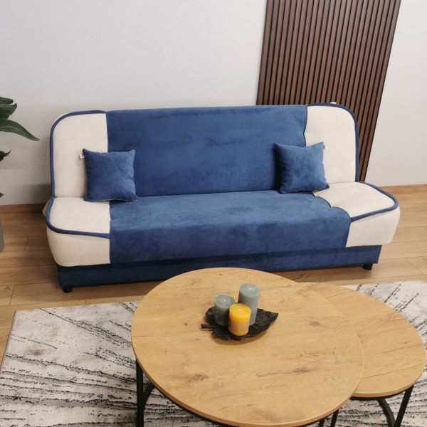 Wypełnienie siedziska sprężyną bonell zapewni wygodne siedzenie i spanie. Pojemnik na pościel oraz funkcja spania umożliwią Ci zapewnienie gościom wygodnego odpoczynku. Modne kolory sprawią, że dopasuje się również do pokoju młodzieżowego. Dwa jaśki dołączone do zestawu dopełniają mebel.
