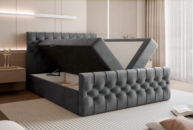 Wysokie łóżko boxspring z 2 pojemnikami na pościel DIANA