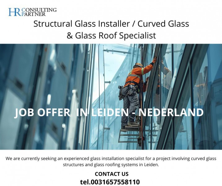 Poszukiwany specjalista do montażu zakrzywionego szkła i dachów szklanych. Praca przy projektach architektonicznych w Leiden. Wymagana precyzja, doświadczenie i gotowość do pracy na wysokościach