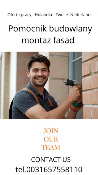 Firma HR Consulting Partner poszukuje pomocnika budowlanego do pracy przy montażu elewacji w miejscowości Zwolle (Holandia).