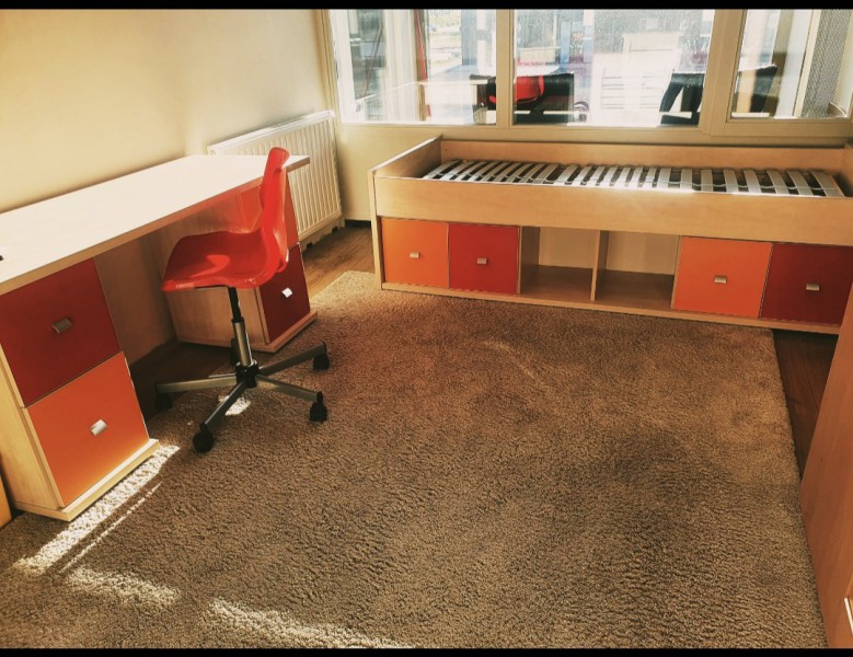 Mam na sprzedaż meble dziecięce z solidnego (ciężkiego) drewna. Łóżko 90×200 (ewentualnie z materacem), regał/półka na zabawki, biurko z krzesłem. Stan mebli: używane jak nowe. Ewentualnie mogę dodać półkę Spider-Man na zabawki. Meble zarówno dla chłopca jak i dziewczynki.