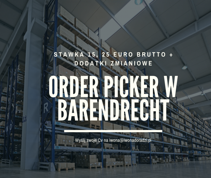 Praca jako order picker w Schiedam oraz Barendrecht. Kompletowanie zamówień w systemie voice picking. Stawka 15,25€ brutto/h + dodatki zmianowe. Praca zmianowa, możliwość zakwaterowania i ubezpieczenia. Wymagana motywacja do pracy, znajomość języka angielskiego oraz prawo jazdy kat. B. Gwarantujemy stabilne zatrudnienie, wypłaty tygodniowe i pomoc polskiego koordynatora. Masz motywację? My mamy oferty! Praca w stabilnych firmach, dobre warunki, pewne godziny. Wyślij swoje cv na [email protected]
