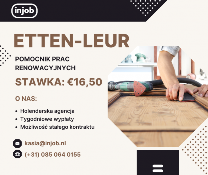 Firma zajmująca się renowacją drewna, metalu i elementów wykończeniowych poszukuje pomocnika prac wykończeniowych, z możliwością stałego kontraktu.