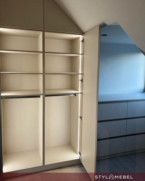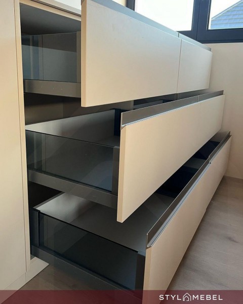 Nasza zabudowa pod skosem to idealne połączenie designu i ergonomii. Dzięki innowacyjnym systemom Blum Polska każda szuflada działa jak marzenie!