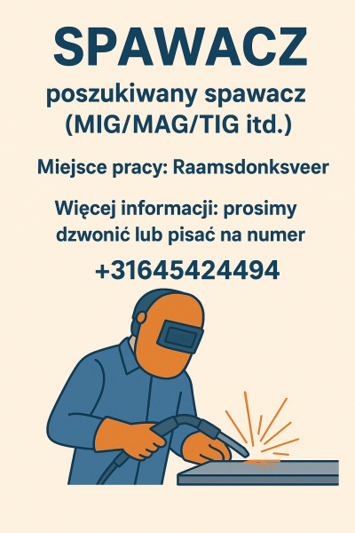 SZUKAMY: Doświadczonego Spawacza (MIG/MAG) – Raamsdonksveer