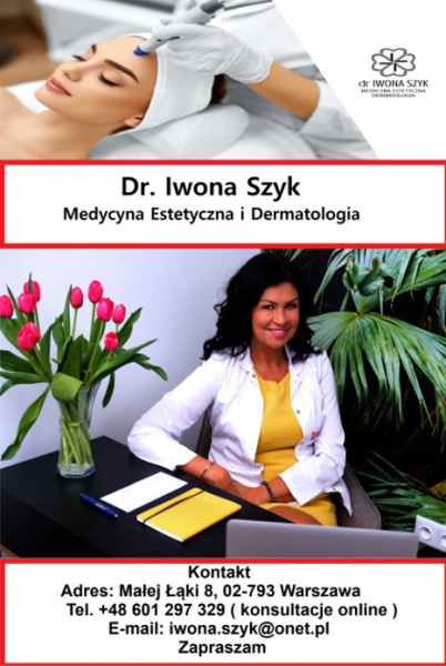 Medycyna i dermatologia są moją pasja, a zadowolony i wyleczony pacjent źródłem satysfakcji i zadowolenia z zycia. Prywatna praktyke lekarska prowadze od 20 lat, medycyna estetyczna zajmuje sie od 12 lat. Biore udział w krajowych i międzynarodowych kongresach w zakresie dermatologii i medycyny estetycznej min. zaawansowane techniki podawania toksyny botulinowej, kwasu hialuronowego, nici PDO gładkie i liftingujące, peelingi lekarskie TCA, hydroksykwasy, wolumetria twarzy, mezoterapia.