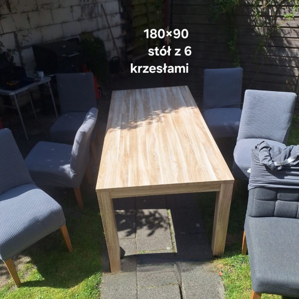 Sprzedam stół + 6 krzeseł z pokrowcami. Stół i krzesła są w dobrym stanie. Odbiór osobisty z Delft.