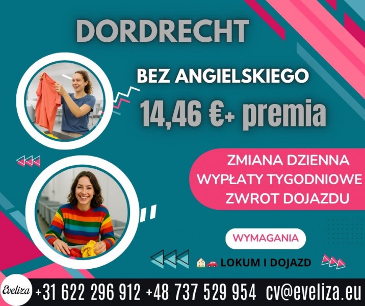 W zakładzie odzieżowym bez wymogu znajomości języka angielskiego 14,46 € + PREMIA