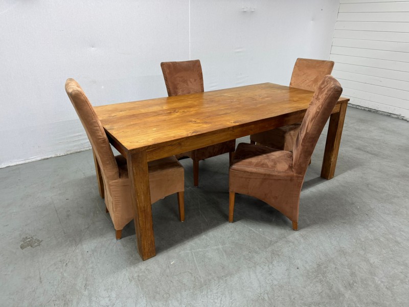 Stół z 4 kezesłami w bardzo dobrym stanie , możliwa dostawa za dodatkową opłatą . informacje pod numerem telefonu.