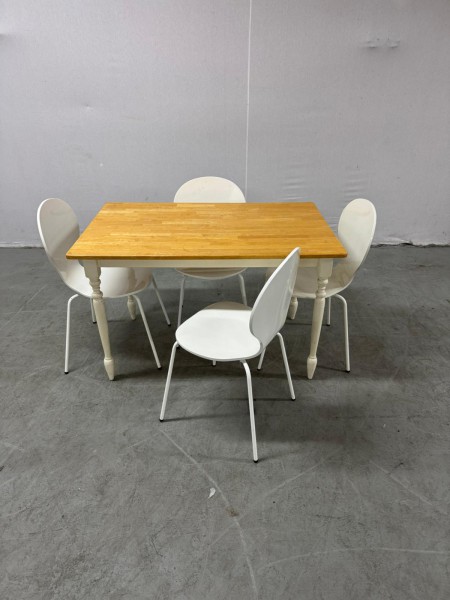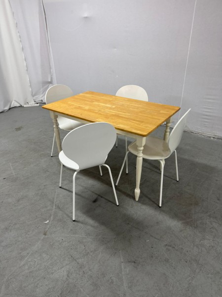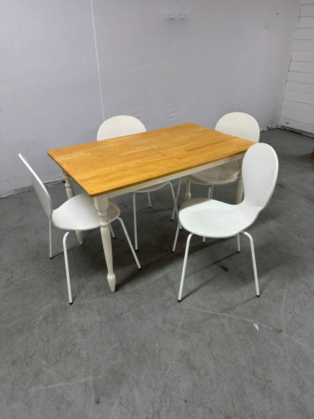 Stół z 4 krzesłami w bardzo dobrym stanie , możliwa dostawa za dodatkową opłatą . informacje pod numerem telefonu.