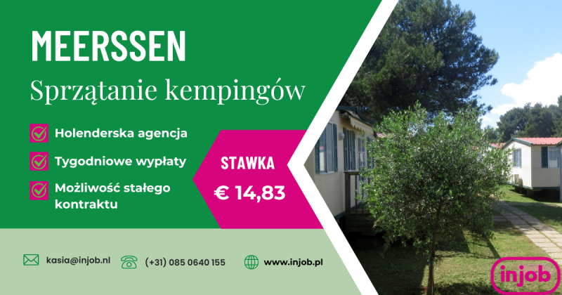 Poszukujemy sumiennych i dokładnych osób do pracy przy sprzątaniu domków kempingowych, kantyny, sanitariatów oraz części wspólnych kempingu. Oferujemy pracę w piątek, sobotę oraz poniedziałek – 8 godzin dziennie (24 godz. tygodniowo), zwrot kosztów dojazdu oraz lunch (drugie śniadanie).