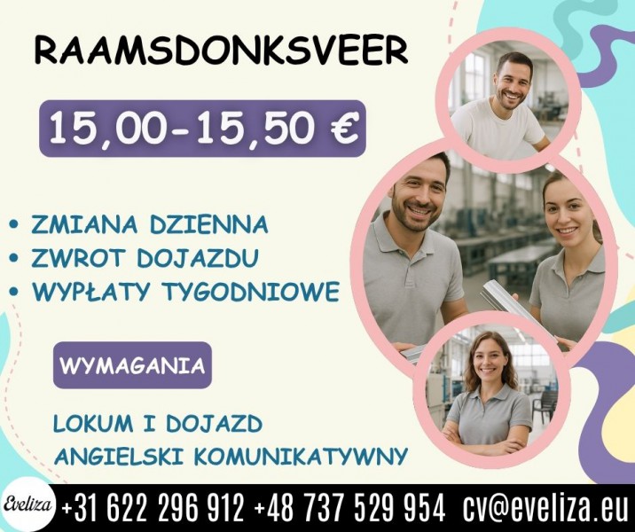 - Możliwe spotkanie w zakładzie przed podjęciem pracy, kurs języka holenderskiego oraz certyfikaty podnoszące umiejętności
