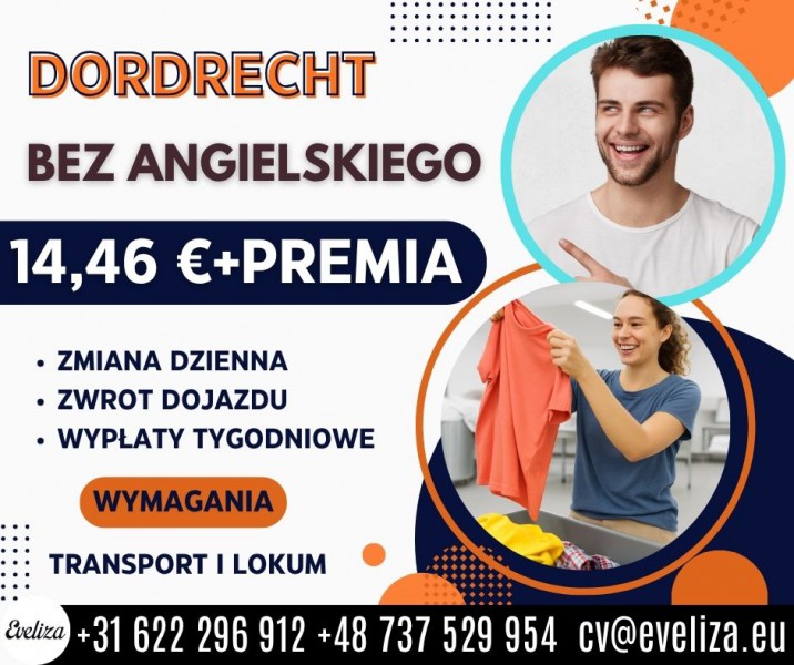 W zakładzie odzieżowym bez wymogu znajomości języka angielskiego 14,46 € + PREMIA